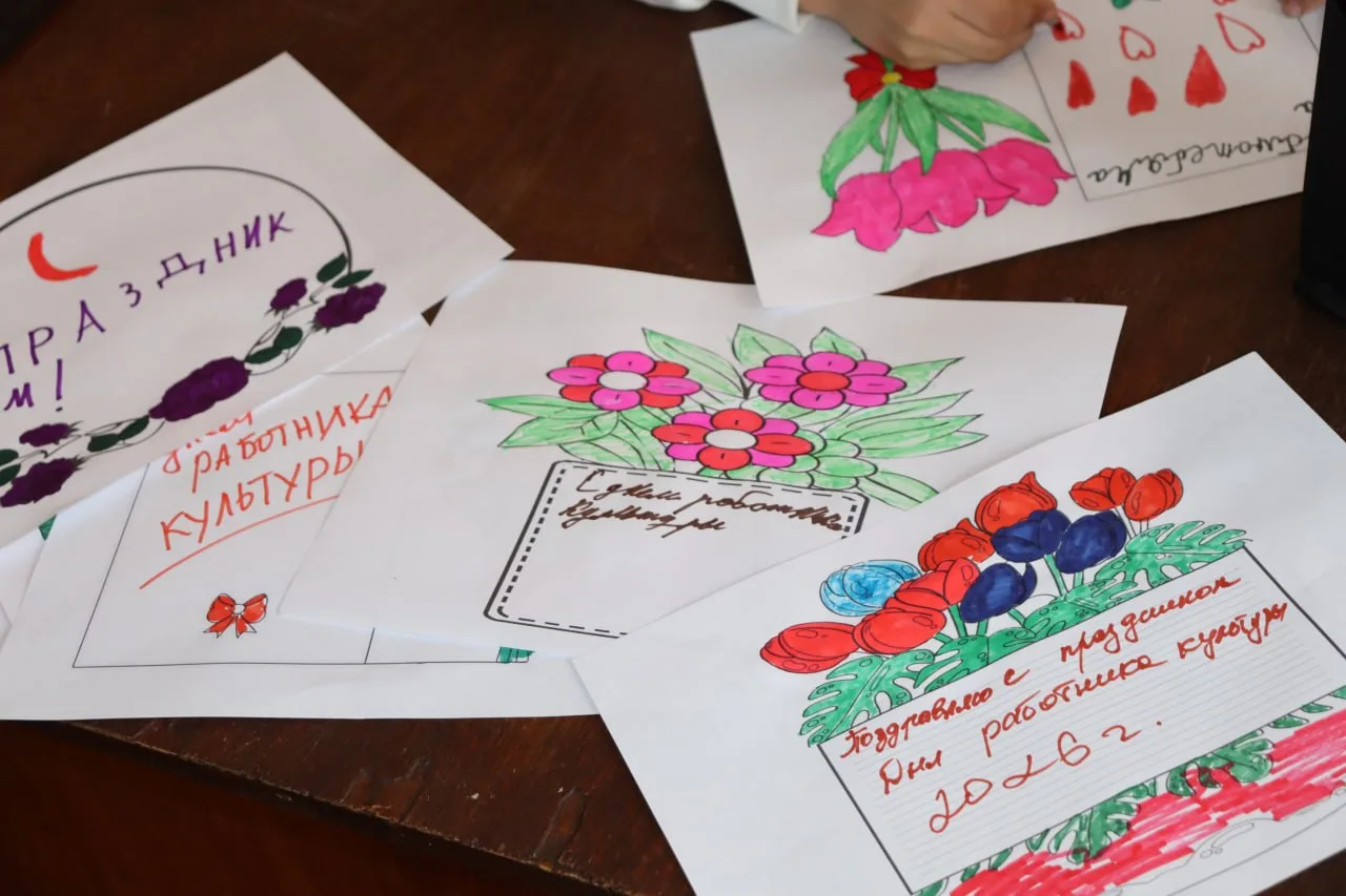 Особым моментом стало творческое задание — учащиеся нарисовали яркие праздничные открытки с поздравлениями, которые вскоре будут переданы работникам культуры в знак благодарности за их труд и вклад в развитие культурной жизни нашего региона. ⭐Мероприятие прошло в тёплой и дружеской атмосфере, оставив у всех участников приятные впечатления и желание дальше узнавать и ценить культурное наследие.