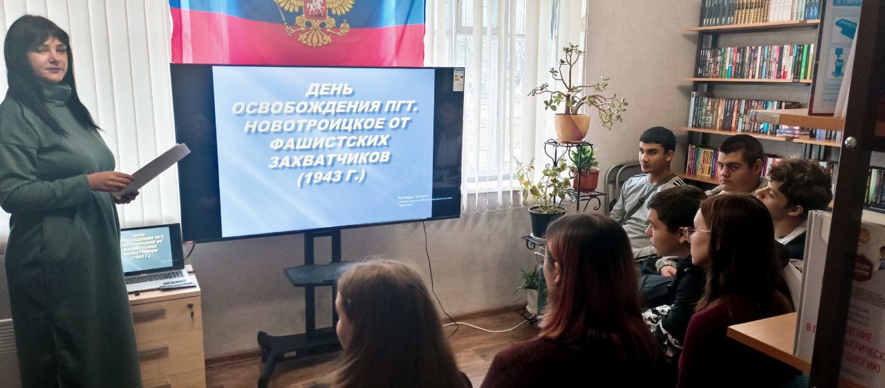 🎖Вниманию студентов была представлена презентация, отражающая октябрь 1943 года, ключевые события и значимость освобождения пгт. Новотроицкого в ходе Великой Отечественной войны.