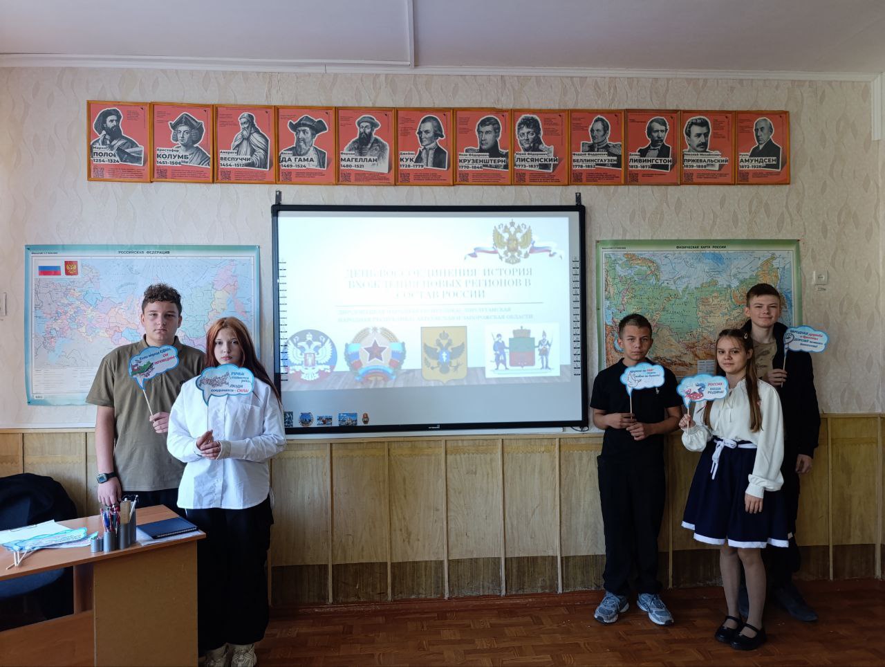 Библиотека провела для учащихся 9-го класса Новотроицкого общеобразовательного учреждения №2 информационный час, посвященный Дню воссоединения Донецкой Народной Республики, Луганской Народной Республики, Запорожской области и Херсонской области с Российской Федерацией.