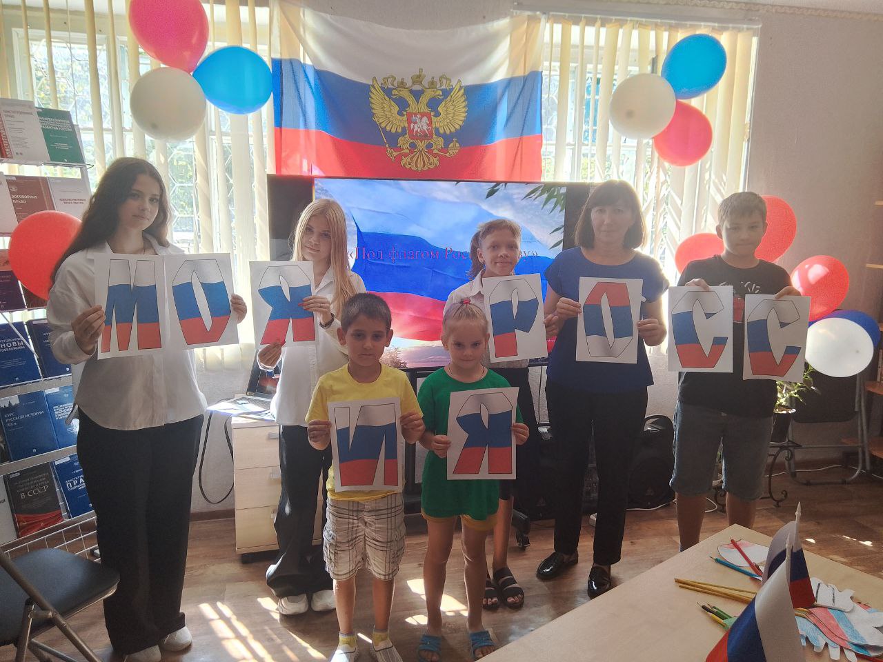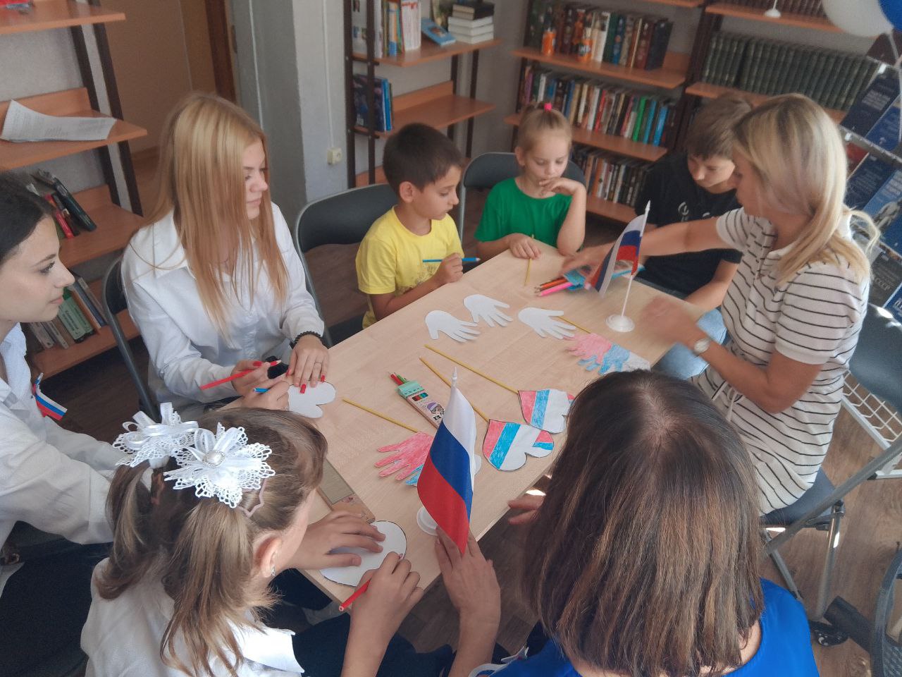 🇷🇺Херсонская областная универсальная научная библиотека поздравила детей пгт. Новотроицкое с праздником – Днём Государственного флага Российской Федерации